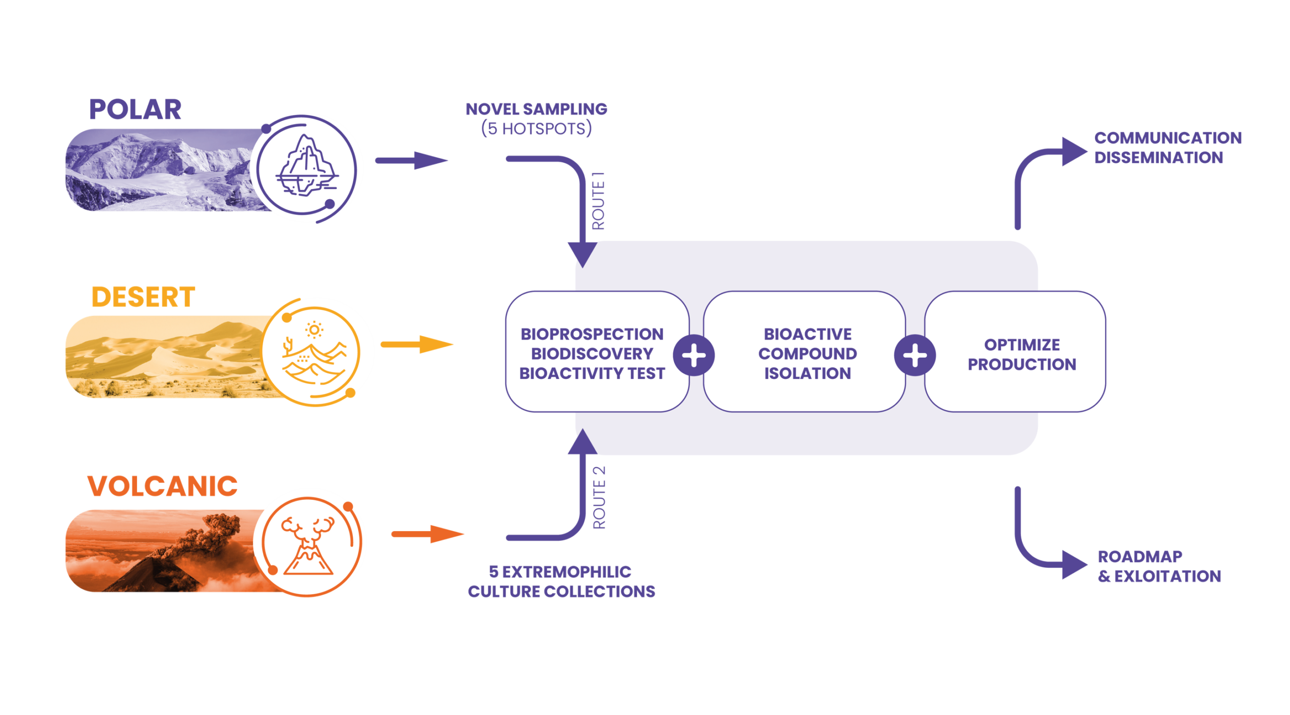 is to bioprospect extremophilic micro-organisms from desert, polar, and volcanic hotspots and accelerate the biodiscovery of new bioactive compounds.